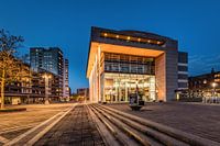 De sfeervol verlichte bibliotheek aan het plein 1992 in Maastricht