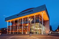 De sfeervol verlichte bibliotheek aan het plein 1992 in Maastricht