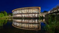 Bibliotheek van de Technische Universiteit van Oost-Beieren in Regensburg tijdens het blauwe uur.