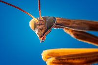 Close up van een bidsprinkhaan in de Auvergne, Frankrijk