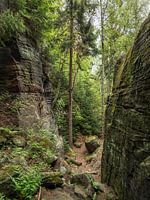 Zeer dicht bij het dorp Ottomühle in het Bielatal, dat slechts een paar huizen telt, ontspringt de Wiesensteine. Om ze te passeren zag ik twee paden, een leidde langs de rotsen, de andere ging er dwars doorheen. Als fotograaf die zeer geïnteresseerd is in spectaculaire perspectieven, koos ik natuurlijk weg nummer twee. Hier kijk ik…
