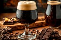 Donkere vloeistof glinstert prikkelend in een stijlvol glas, omringd door verleidelijke stukjes chocolade en vers gebrande koffiebonen. De romige topping en het gezellige karakter nodigen uit om van het moment te genieten. Dit kunstwerk is de perfecte aanvulling voor een gezellige keuken of een uitnodigende barhoek in de woonkamer.