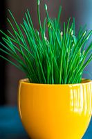 Een levendige gele kleur fleurt de kamer op en benadrukt de frisse, levendige stengels bieslook. Dit harmonieuze samenspel brengt frisheid en levensvreugde in elke keuken. Perfect om creatieve kookmomenten te inspireren en een uitnodigende sfeer te creëren. Een echte blikvanger voor iedereen die van koken houdt!