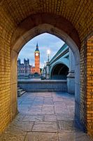 Big Ben gezien vanaf tunnel te Londen.