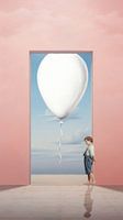 Dromerig, zacht en surrealistisch portret van een kleine jongen die treurt om zijn grote ballon.