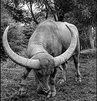 The Texas Longhorn is a breed of cattle known for its characteristic horns, which can extend to over 100 inches (2.54 m) tip to tip for cows and bulls.[1] They are descendants of the first cattle introduced in the New World, brought by explorer Christopher Columbus and the Spanish colonists.