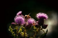 Midden in deze bos met distels een bij die van de ene naar de ander loopt!