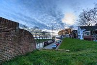Vanaf de graswal, die aansluitend aan de Veerpoort in Schoonhoven begint, heb je een mooi uitzicht over de noodhaven en de rivier de Lek.