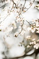 Deze dromerige foto vangt een intiem moment waarin een bij zich tegoed doet aan nectar, omringd door zacht verlichte bloesems. De lichte, vervaagde achtergrond en het warme zonlicht creëren een bijna schilderachtige sfeer, terwijl de delicate bloesems symbool staan voor de vergankelijkheid van de lente. Dit kunstwerk brengt de rust en harmonie van de natuur tot leven, perfect voor liefhebbers van subtiele, poëtische fotografie.