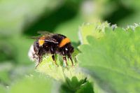 Prachtige close up macro opname van een Bij in de lente met een groene achtergrond