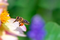 Over ‘Bij nadert een dahlia’ van ManfredFotos