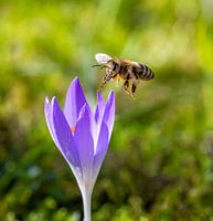 Over ‘Bij nadert een paarse krokusbloem’ van ManfredFotos