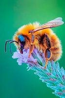 Er ontvouwt zich een levendig schouwspel van de natuur: een pluizige bij zweeft boven tere bloemen, terwijl zachte groene tinten harmonieus samengaan op de achtergrond. De ingewikkelde details van zijn vleugels en de feloranje kleur van zijn lijf stralen een rustgevende levendigheid uit. Dit betoverende kunstwerk verfraait elke kamer, vooral de woonkamer of het kantoor aan huis, en brengt een stukje natuur in huis.