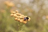 Kleurrijk gezicht van een bij op een gele bloem in de zomer. Wat is de natuur toch mooi. De lente begint toch echt de bijen en wespen zich weer laten zien ;)