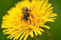 Bij op een bloem die nectar verzamelt. Insect uit de natuur aan het eten. Macro-opname van een insect