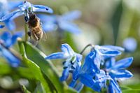 Bij op een bloem die nectar verzamelt. Insect uit de natuur aan het eten. Macro-opname van een insect