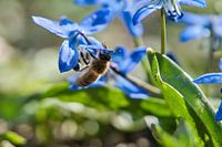Koop dit bloemen kunstwerk Bij op een bloem die nectar verzamelt van Martin Köbsch op canvas, aluminium dibond, (ingelijste) fotoprint, behang en ArtFrame, op maat geprint in Fine-Art kwaliteit.