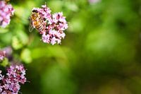 Koop dit bloemen kunstwerk Bij op een bloem die nectar verzamelt van Martin Köbsch op canvas, aluminium dibond, (ingelijste) fotoprint, behang en ArtFrame, op maat geprint in Fine-Art kwaliteit.
