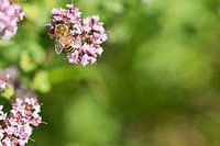 Bij op een bloem die nectar verzamelt. Insect uit de natuur aan het eten. Macro-opname van een insect