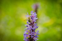 Een bij geniet in de zomer van de nectar van een paarse bloem.