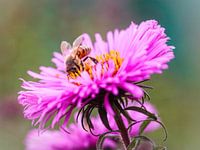 Bij op een paarse bloem.