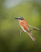 Misschien wel de mooiste van zijn soort. Dit is de Carmine Bee-eater gefotografeerd in Zuid-Afrika (Kruger National Park). De mooie kleuren met de groene achtergrond maakt de foto speciaal.