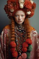 Bijzonder kleurrijk, folkloristisch portret. Dit werk is heel geschikt voor je als je een wat smallere muur hebt, bijvoorbeeld in een trappenhuis of een bredere pilaar. Dit portret is een echte eyecatcher!
