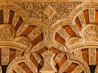 Een van de bijzondere bogen in de Mezquita in Cordoba