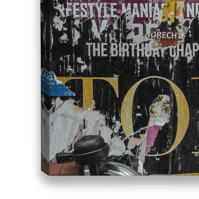Oude posters op een billboard. Kleurrijke foto. Past goed in een modern interieur.