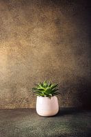 Binnen kamerplant succulent in roze keramische pot op bruine achtergrond