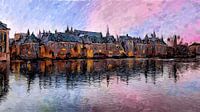 Unieke digitale schilderij van het Binnenhof in Den Haag, ideaal als wanddecoratie. Gemaakt van een echte foto, perfect voor een indrukwekkend kunstwerk aan de muur.