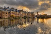 Binnenhof weerspiegeld in de Hofvijver tijdens zonsondergang van Rob Kints
