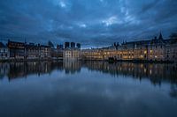 Donkere wolken boven het parlement in Binnenhof in Den Haag tijdens de vroege ochtend.