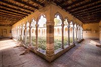 Dit is een foto van de binnenplaats van een verlaten klooster ergens op een heuvel in Frankrijk. Het klooster is gebouwd in de 14e eeuw en is verwoest in de 19e eeuw. Diverse elementen van het klooster zijn later teruggebracht en daarmee is het klooster conform originele layout weer opgebouwd.