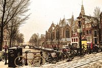 Het sneeuwt in Amsterdam. Het koud en glad. Er waait een gure wind door de straten en grachten. Meeste toeristen zitten warm binnen.