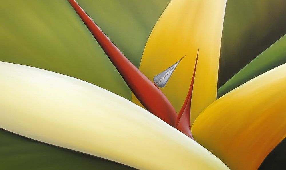 Abstract close-up portret van een Paradijsvogelbloem, ook wel Papegaaien-bloem of Strelitzia genoemd.