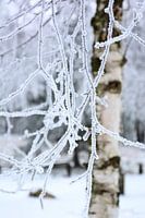 Raureif bedeckt die Zweige einer Birke und schafft ein malerisches Bild. Aufgenommen in der Lüneburger Heide im Januar 2016.