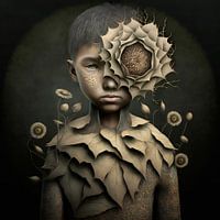 Surrealistisch portret van een jongetje dat groeit en bloeit als een mooie unieke bloem.