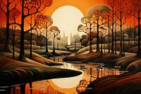 Bizarre surrealistich art deco landschap van een buitenaardse planeet