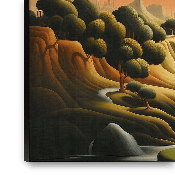 Koop dit landschapskunstwerk Bizarre surrealistich art deco landschap van een buitenaardse planeet van Art Bizarre als print op canvas, aluminium dibond, (ingelijste) fotoprint, behang en ArtFrame. Voor jou op maat geprint in Fine-Art kwaliteit.