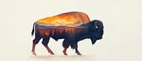 Een majestueuze bizon in een adembenemend landschap ontvouwt tegelijkertijd zijn kracht en rust. De gouden avondlucht en zachte bergen weerspiegelen de verbondenheid met de natuur. Dit kunstwerk brengt een vleugje wildernis en vrijheid in de woonkamer, ideaal voor momenten van inspiratie en ontspanning.