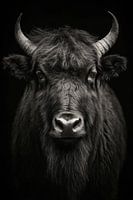 Met zijn imposante aanwezigheid en diepzwarte vacht springt dit majestueuze dier in het oog, terwijl zijn krachtige hoorns en expressieve blik verhalen vertellen over vrijheid en landelijke idylles. Het kunstwerk is ideaal voor in de keuken of woonkamer en creëert levendige gesprekken en een rustieke sfeer die de charme van het plattelandsleven uitstraalt.