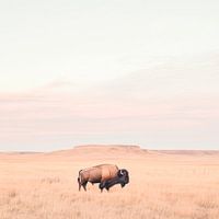 In de eindeloze uitgestrektheid van de zachte, gouden prairie rijst de koning van de wilgen majestueus op. De zachte pastelkleuren van de lucht omlijsten zijn krachtige lichaam, terwijl de wind zachtjes door het hoge gras blaast. Een beeld van rust en elementaire kracht, dat de vrijheid en wildheid van de natuur weerspiegelt.