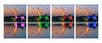 A four image collage from the sunset at Climbing Center Bjoeks, located at sportpark Kardinge in Groningen, The Netherlands. The amazing Excalibur tower at 37m tall this is the world's current tallest free-standing climbing wall.