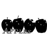 schwarze äpfel mit schriftzug