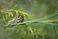 Een prachtige rups beklimt een dille plant.