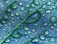 Een blad heeft mooie structuren van nerven. Hier goed zichtbaar tezamen met de druppels. Fris! Fraaie kleuren van petrol, aquamarijn, denimv tot zachtgroen. Zou dit werk niet heel mooi passen binnen de nieuwe collectie Tranquil Dawn? Zeker weten!