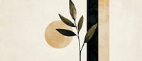 Een harmonieus samenspel van zachte aardetinten en elegante, minimalistische vormen ontvouwt zich in dit kunstwerk. De gestileerde bladeren voor de grote, gouden cirkel geven de kamer een rustgevende sfeer. Ideaal voor de woonkamer, waar het gezelligheid en stijlvolle lichtheid uitstraalt. Een blikvanger die zachtjes de zintuigen aanspreekt.