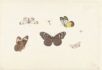 Blad met vijf vlinders en twee vliegen, Pieter Withoos (1674-1692)