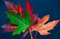 Koop de foto Blad van groen naar rood tot bruin van Jolanda de Jong-Jansen op canvas, aluminium dibond, (ingelijste) fotoprint, behang en ArtFrame, op maat geprint in Fine-Art kwaliteit.